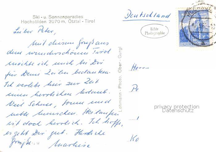 72786577 alte Postkarte Hochsoelden Skigebiet postalisch gelaufen Erhaltung siehe scans [LiesaD40] KatCode: 11390334070220