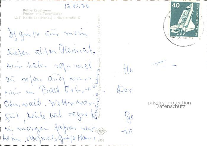 72580515 alte Postkarte Hochstadt Hessen Kegelmann Papier Tabak postalisch gelaufen Erhaltung siehe scans [KathaD79] KatCode: 11110006435019