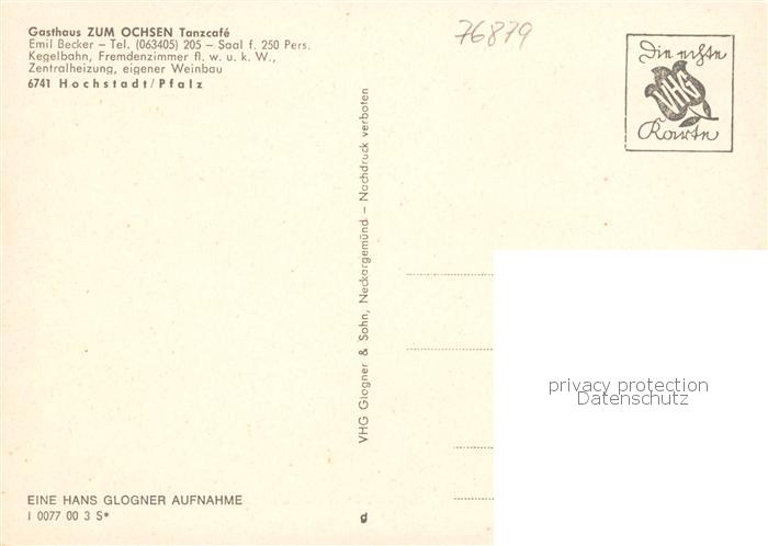 73855383 Hochstadt Pfalz Gasthaus zum Ochsen Restaurant Kegelbahn postalisch nicht gelaufen Erhaltung siehe scans [FriedD77] KatCode: 11110007337041