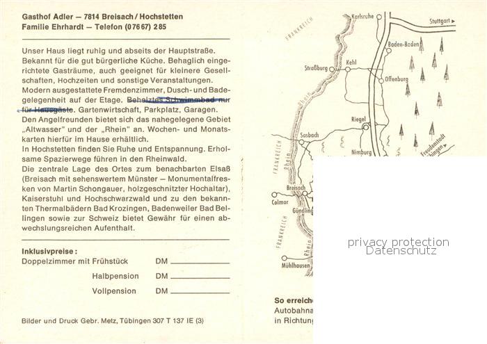 73616449 Hochstetten Breisach Rhein Gasthof Adler Gaststube Bar Breisacher Muenster postalisch nicht gelaufen Werbekarte (keine Postkarte) Erhaltung siehe scans [WerneD78] KatCode: 11110008315015