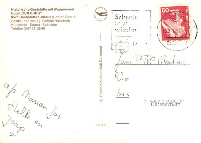 72936538 alte Postkarte Hochstetten Hochstetten-Dhaun Schloss Dhaun Historische Gaststaette Fliegeraufnahme postalisch gelaufen Erhaltung siehe scans [FriedD77] KatCode: 11110007133046