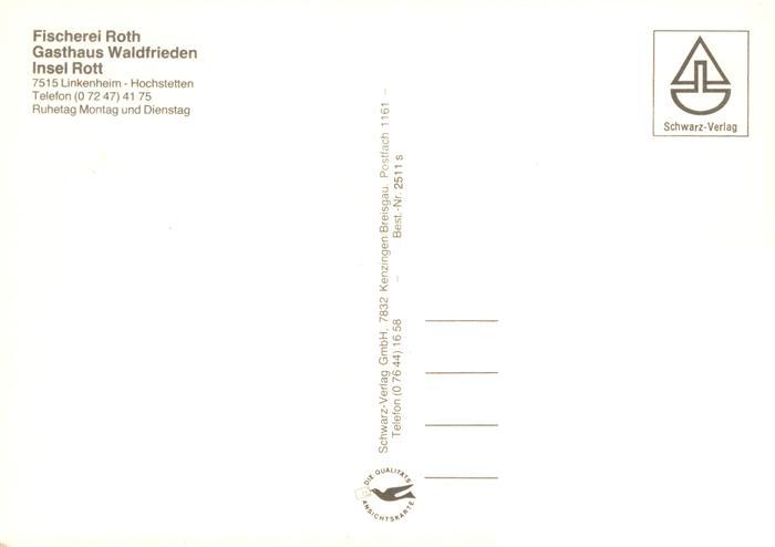 73938302 Hochstetten Linkenheim-Hochstetten Fischerei Roth Gasthaus Waldfrieden Insel Rott Gastraeume Fischgericht postalisch nicht gelaufen Erhaltung siehe scans [WerneD78] KatCode: 11110008215105