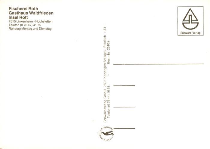 73938301 Hochstetten Linkenheim-Hochstetten Fischerei Roth Gasthaus Waldfrieden Insel Rott Gastraeume Fischerboot postalisch nicht gelaufen Erhaltung siehe scans [WerneD78] KatCode: 11110008215105