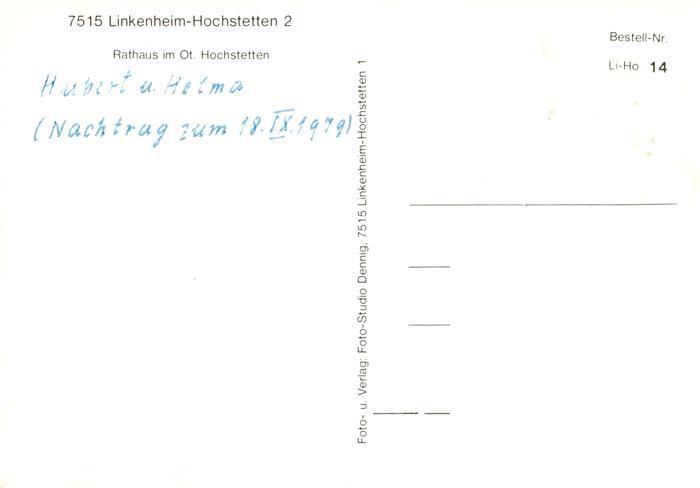 73938310 Hochstetten Linkenheim-Hochstetten Rathaus postalisch nicht gelaufen Erhaltung siehe scans [WerneD78] KatCode: 11110008215105