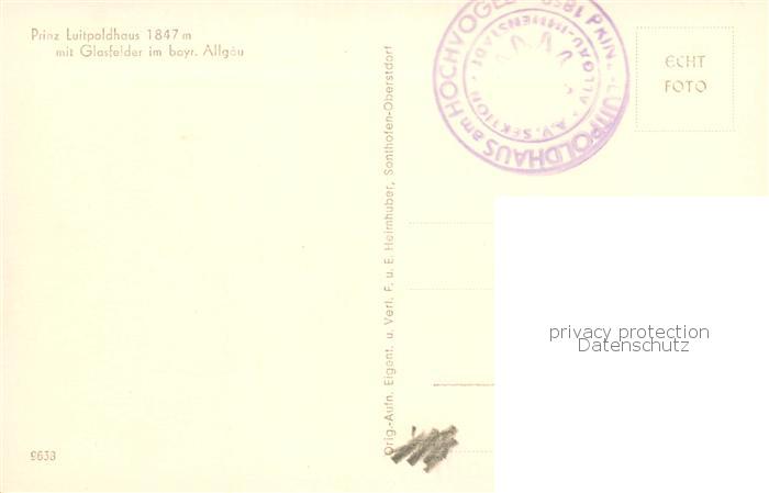 73809666 Hochvogel 2589m Bad Hindelang Prinz Luitpoldhaus mit Glasfelder postalisch nicht gelaufen Erhaltung siehe scans [FriedD77] KatCode: 11110009780123