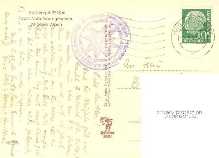 73308996 alte Postkarte Hochvogel Gebirgspanorama Allgaeuer Alpen postalisch gelaufen Erhaltung siehe scans [FriedD77] KatCode: 11110009780123