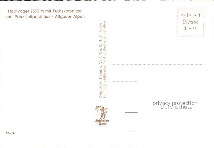 72395401 Hochvogel mit Fuchskarspitze und Prinz Luitpoldhaus postalisch nicht gelaufen Erhaltung siehe scans KatCode: 11110009780123
