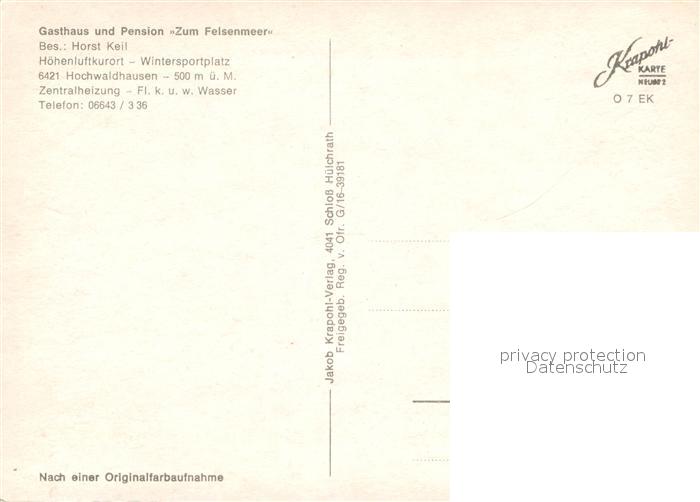 73009210 Hochwaldhausen Ilbeshausen Gasthaus Pension Zum Felsenmeer Fliegeraufnahme postalisch nicht gelaufen Erhaltung siehe scans [WerneD78] KatCode: 11110006535007