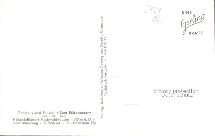 72129036 Hochwaldhausen Ilbeshausen Gasthaus Pension Zum Felsenmeer postalisch nicht gelaufen Erhaltung siehe scans KatCode: 11110006535007