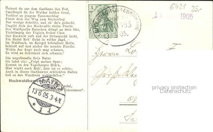 72128982 alte Postkarte Hochwaldhausen Ilbeshausen Gasthaus Zum Felsenmeer postalisch gelaufen Erhaltung siehe scans KatCode: 11110006535007