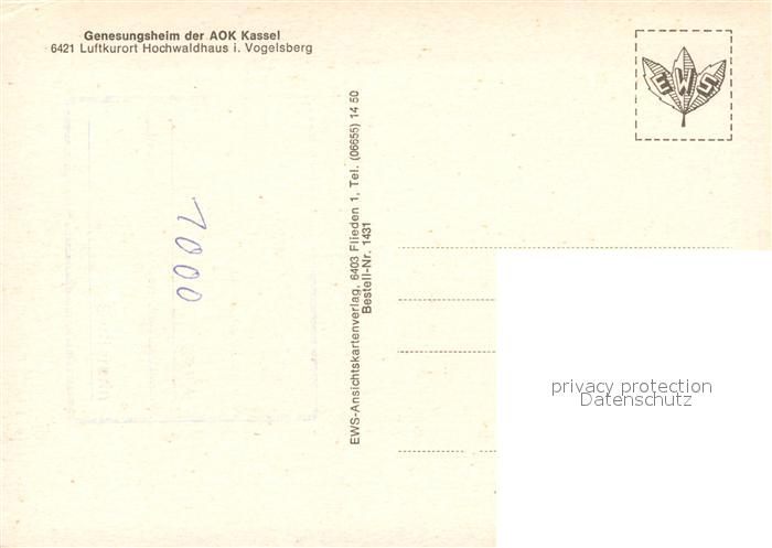 73124575 Hochwaldhausen Ilbeshausen Genesungsheim AOK Kassel postalisch nicht gelaufen Erhaltung siehe scans [KathaD81] KatCode: 11110006535007