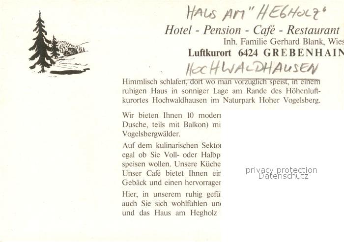 73099074 Hochwaldhausen Ilbeshausen Haus am Hebholz postalisch nicht gelaufen Werbekarte (keine Postkarte) Erhaltung siehe scans [KathaD81] KatCode: 11110006535007
