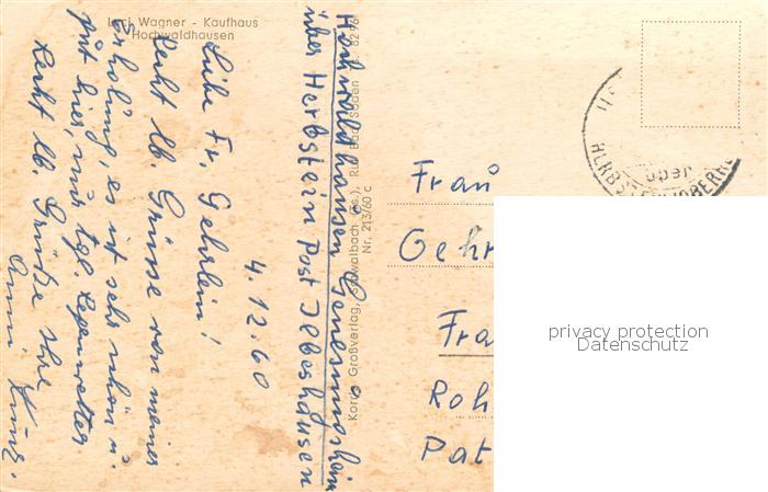 73768940 alte Postkarte Hochwaldhausen Ilbeshausen Pension Stirm Heuser Strasse postalisch gelaufen Erhaltung siehe scans [WerneD78] KatCode: 11110006535007