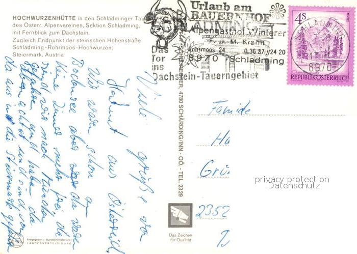 73088982 alte Postkarte Hochwurzenhuette Schladming postalisch gelaufen Erhaltung siehe scans [PaolaD17] KatCode: 11390222061237