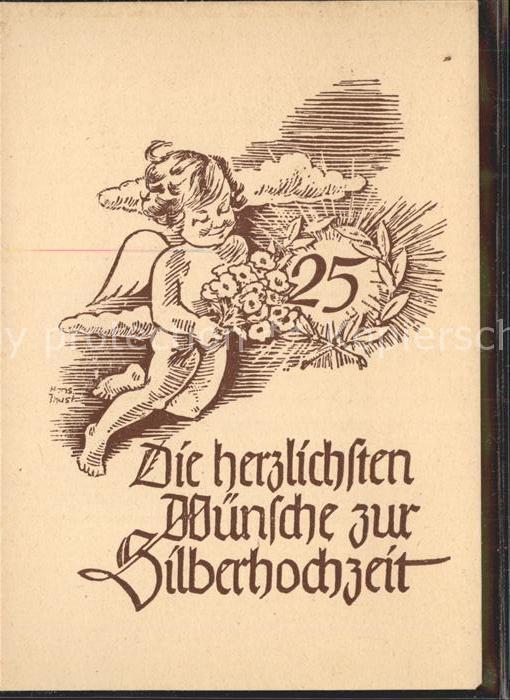 Hochzeit Glueckwunsch Silberhochzeit Engel Blumen postalisch nicht gelaufen Erhaltung siehe scans