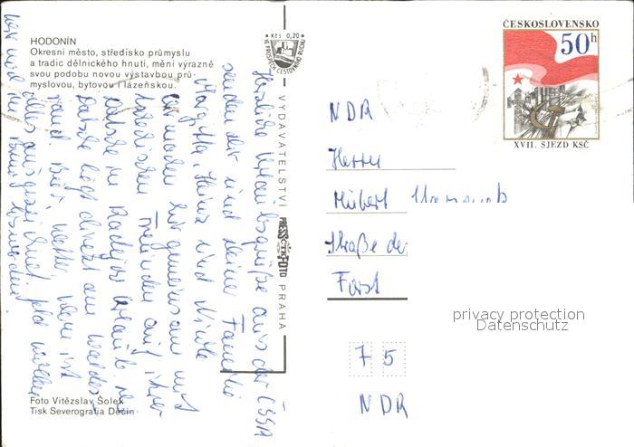 old postcard Hodonin Teilansichten Denkmal Statue postalisch gelaufen Erhaltung siehe scans