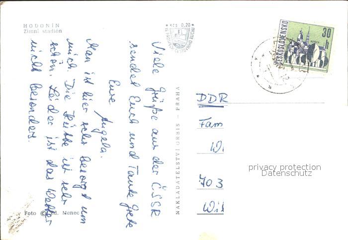 old postcard Hodonin Zimni stadion postalisch gelaufen Erhaltung siehe scans