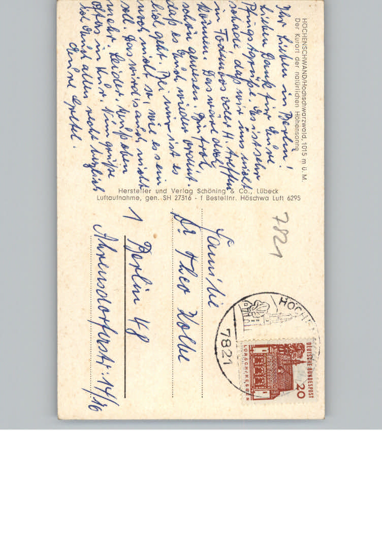 31154057 Hoechenschwand postalisch nicht gelaufen KatCode: 11110008337051
