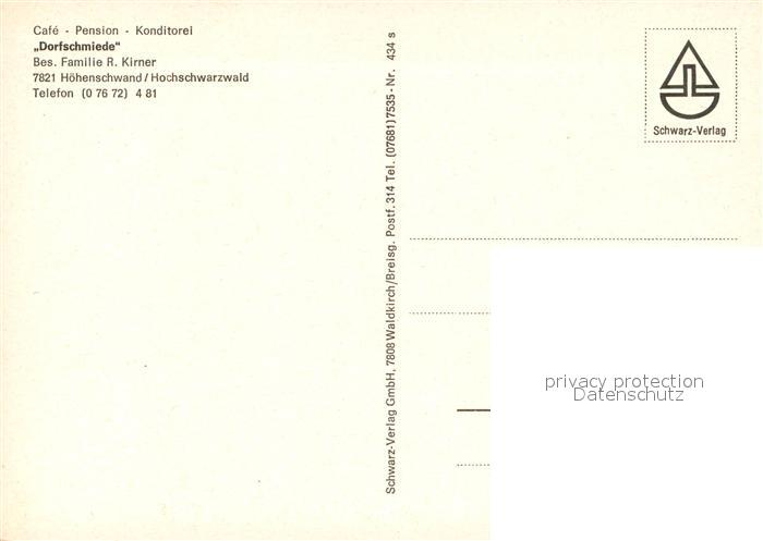 73570081 Hoechenschwand Cafe Pension Konditorei Dorfschmiede Schwarzwald postalisch nicht gelaufen Erhaltung siehe scans [FriedD77] KatCode: 11110008337051