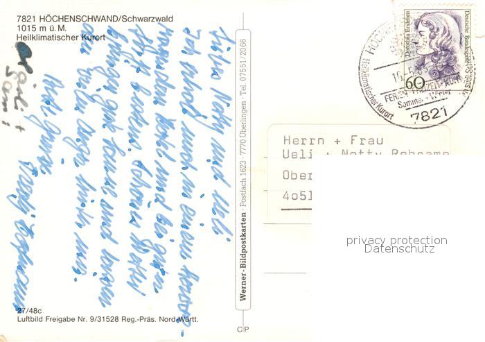 73317341 alte Postkarte Hoechenschwand Fliegeraufnahme postalisch gelaufen Erhaltung siehe scans [KathaD81] KatCode: 11110008337051