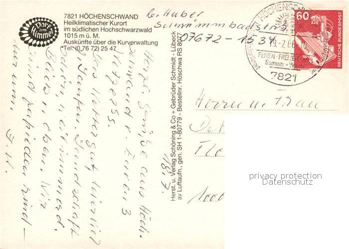 73311935 alte Postkarte Hoechenschwand Fliegeraufnahme postalisch gelaufen Erhaltung siehe scans [KathaD81] KatCode: 11110008337051