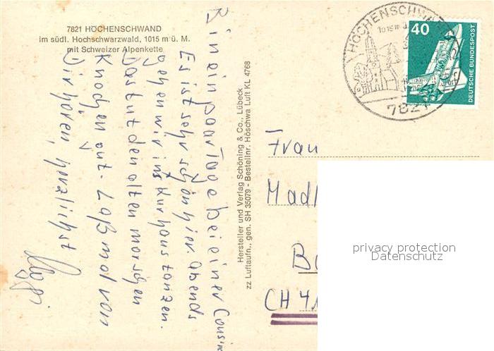 73317359 alte Postkarte Hoechenschwand Fliegeraufnahme Alpenkette postalisch gelaufen Erhaltung siehe scans [KathaD81] KatCode: 11110008337051