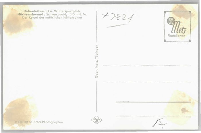 40734847 Hoechenschwand Schwarzwald BW postalisch nicht gelaufen Alte Ansichtskarte Postkarte Katcode 11110008337051