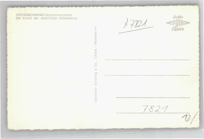 40734830 Hoechenschwand Schwarzwald BW postalisch nicht gelaufen Alte Ansichtskarte Postkarte Katcode 11110008337051