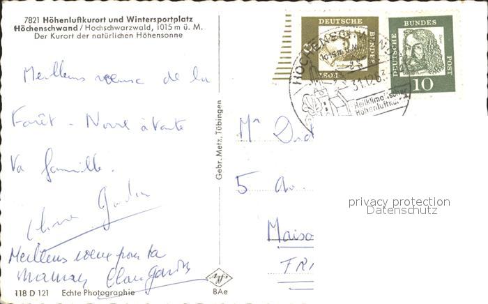 72165568 alte Postkarte Hoechenschwand Schwarzwald BW postalisch gelaufen Erhaltung siehe scans KatCode: 11110008337051