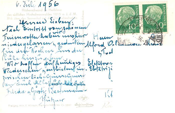 73917289 Hoechenschwand Schwarzwald BW Blick ueber den Sonnenhof auf den Ort postalisch gelaufen Fliegeraufnahme Erhaltung siehe scans [FriedD77] Fliegeraufnahme alte Postkarte Frie Katcode 11110008337051