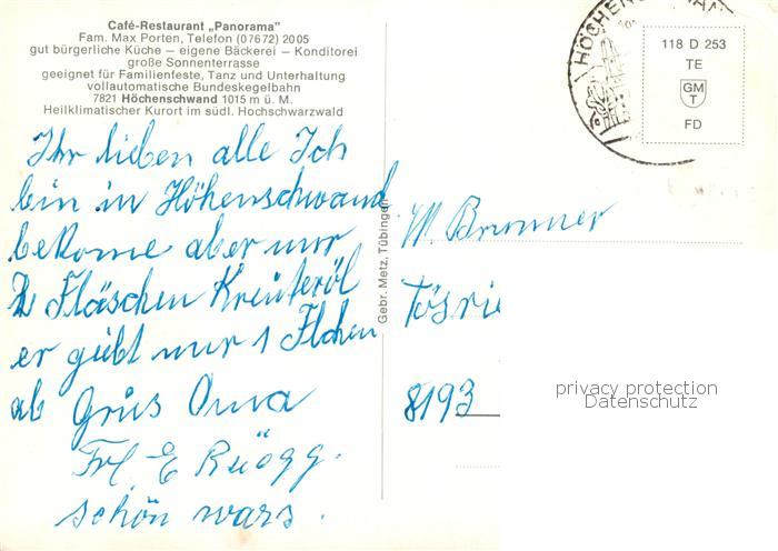 73845144 Hoechenschwand Schwarzwald BW Cafe Restaurant Panorama Gastraeume Kegelbahn postalisch gelaufen Erhaltung siehe scans [WerneD78] alte Postkarte Wern Katcode 11110008337051
