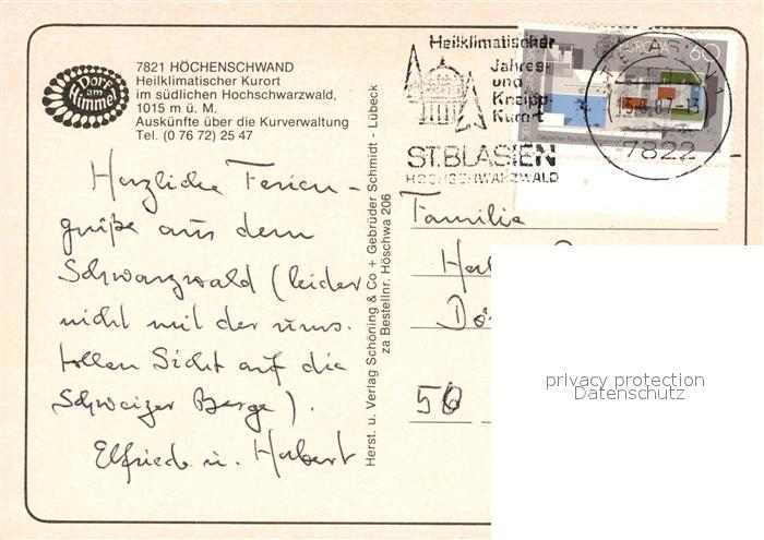 73023837 alte Postkarte Hoechenschwand Schwarzwald BW Das Dorf am Himmel Ev Kirche St Georg Kurhaus Waldkapelle postalisch gelaufen Erhaltung siehe scans [WerneD78] KatCode: 11110008337051