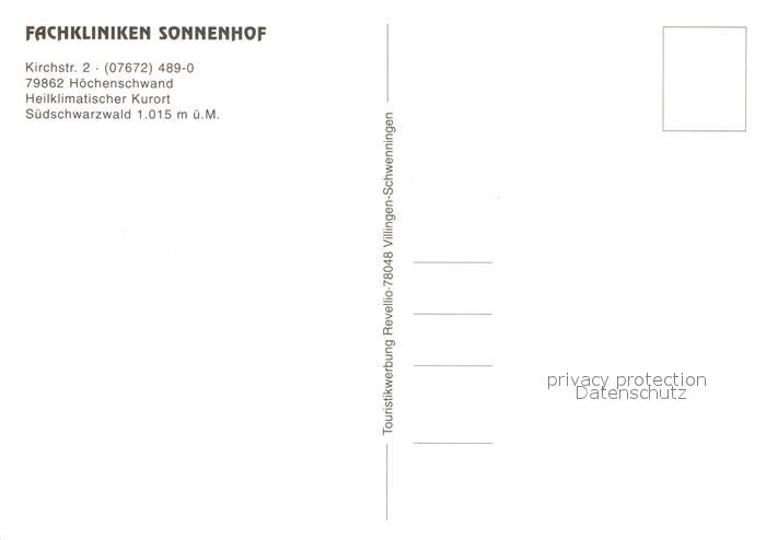 73091869 Hoechenschwand Schwarzwald BW Fachkliniken Sonnenhof postalisch nicht gelaufen Erhaltung siehe scans [KathaD81] KatCode: 11110008337051