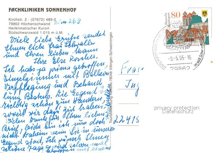 72947319 alte Postkarte Hoechenschwand Schwarzwald BW Fachkliniken Sonnenhof postalisch gelaufen Erhaltung siehe scans [WerneD78] KatCode: 11110008337051