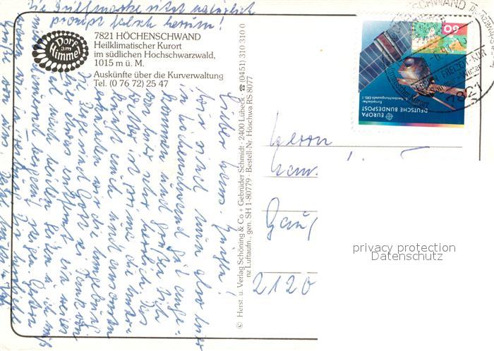 72937331 alte Postkarte Hoechenschwand Schwarzwald BW Fliegeraufnahme postalisch gelaufen Erhaltung siehe scans [WerneD78] KatCode: 11110008337051