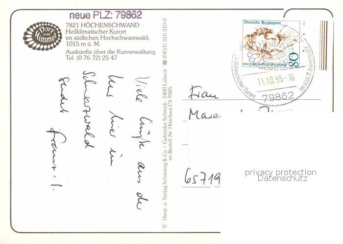 72895476 alte Postkarte Hoechenschwand Schwarzwald BW Fliegeraufnahme postalisch gelaufen Erhaltung siehe scans [WerneD78] KatCode: 11110008337051