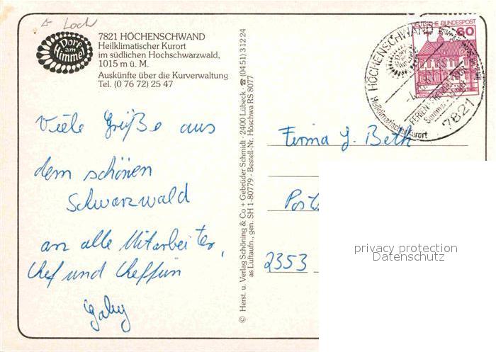 72885253 alte Postkarte Hoechenschwand Schwarzwald BW Fliegeraufnahme postalisch gelaufen Erhaltung siehe scans [WerneD78] KatCode: 11110008337051