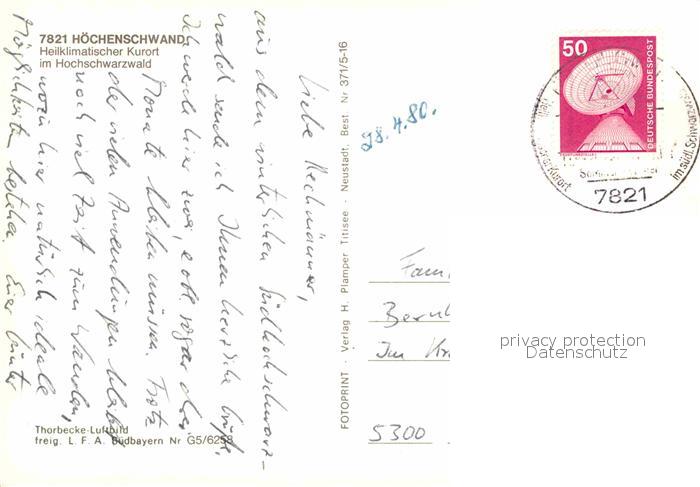 72785522 alte Postkarte Hoechenschwand Schwarzwald BW Fliegeraufnahme postalisch gelaufen Erhaltung siehe scans [AndreD76] KatCode: 11110008337051