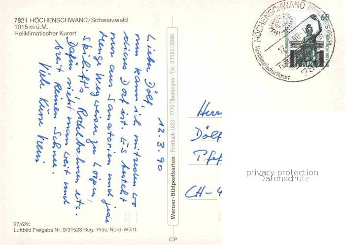 72761767 alte Postkarte Hoechenschwand Schwarzwald BW Fliegeraufnahme postalisch gelaufen Erhaltung siehe scans [NatalD47] KatCode: 11110008337051