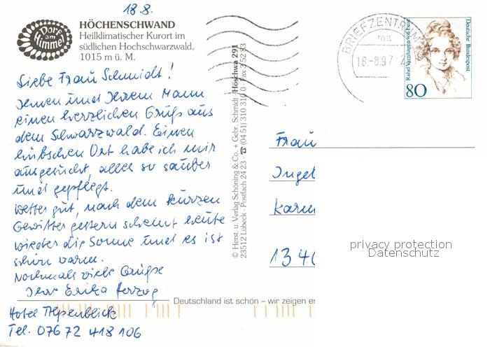 72727791 alte Postkarte Hoechenschwand Schwarzwald BW Fliegeraufnahme postalisch gelaufen Erhaltung siehe scans [LiesaD40] KatCode: 11110008337051