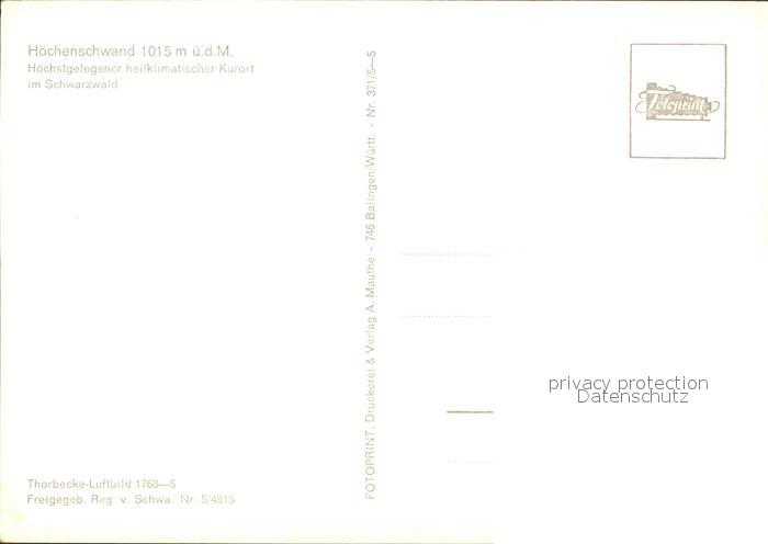 72374985 Hoechenschwand Schwarzwald BW Fliegeraufnahme postalisch nicht gelaufen Erhaltung siehe scans KatCode: 11110008337051