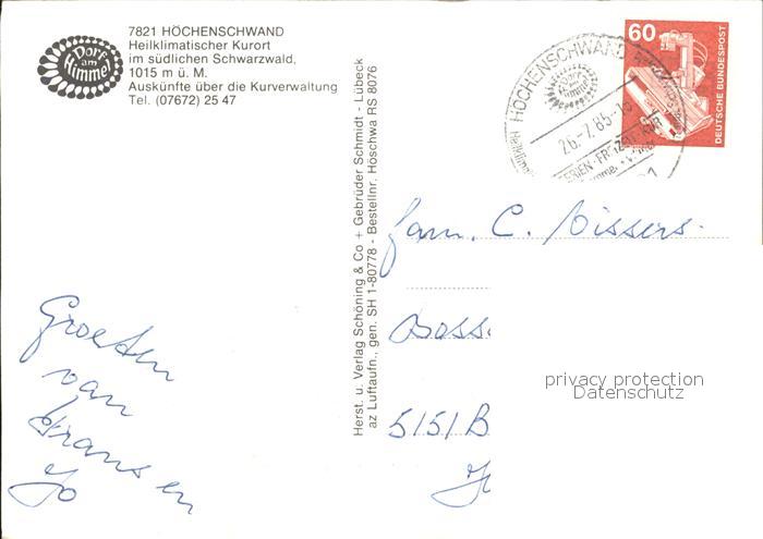 72270197 alte Postkarte Hoechenschwand Schwarzwald BW Fliegeraufnahme postalisch gelaufen Erhaltung siehe scans KatCode: 11110008337051