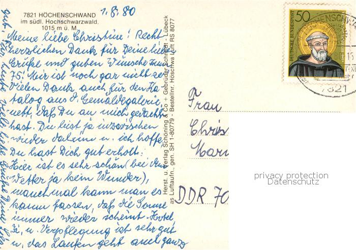 73765447 Hoechenschwand Schwarzwald BW Fliegeraufnahme postalisch gelaufen Erhaltung siehe scans [WerneD78] alte Postkarte Wern Katcode 11110008337051