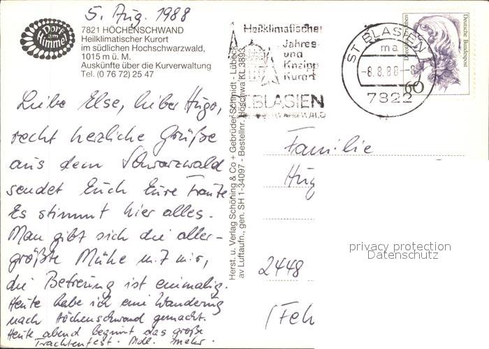 72036866 alte Postkarte Hoechenschwand Schwarzwald BW Fliegeraufnahme postalisch gelaufen Erhaltung siehe scans KatCode: 11110008337051