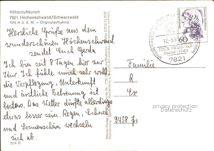 72567524 alte Postkarte Hoechenschwand Schwarzwald BW Fliegeraufnahme mit Eiger Moench Jungfrau postalisch gelaufen Erhaltung siehe scans [LiesaD40] KatCode: 11110008337051