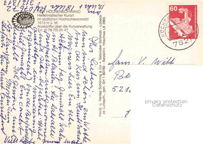72754442 alte Postkarte Hoechenschwand Schwarzwald BW Fliegeraufnahme mit Feldberg postalisch gelaufen Erhaltung siehe scans [WerneD78] KatCode: 11110008337051