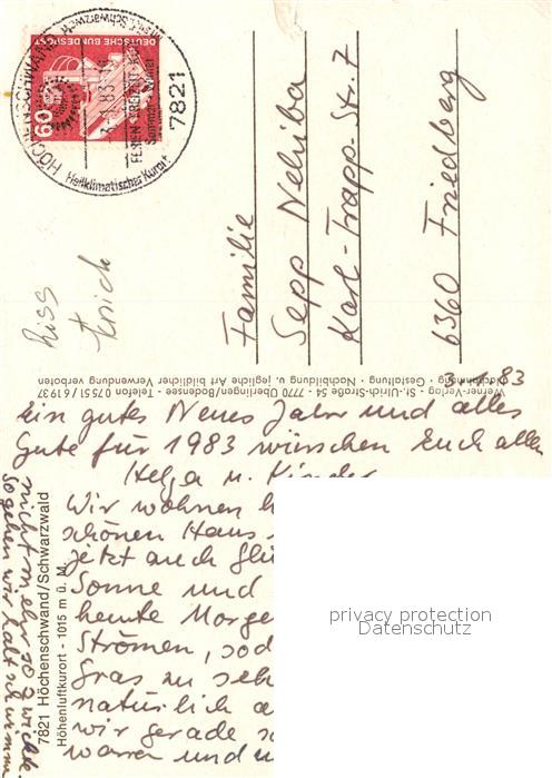 73224557 alte Postkarte Hoechenschwand Schwarzwald BW Fliegeraufnahme Winterlandschaft postalisch gelaufen Erhaltung siehe scans [KathaD81] KatCode: 11110008337051