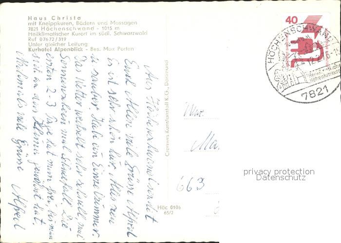 72311380 alte Postkarte Hoechenschwand Schwarzwald BW Haus Christa postalisch gelaufen Erhaltung siehe scans KatCode: 11110008337051