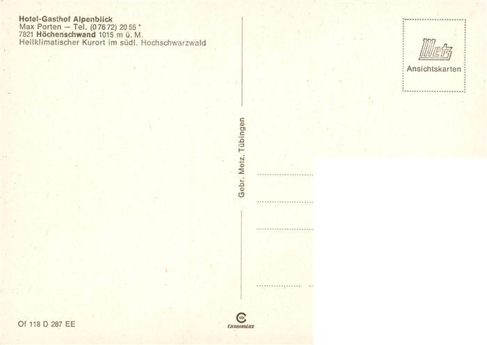 73926244 Hoechenschwand Schwarzwald BW Hotel Gasthof Alpenblick postalisch nicht gelaufen Erhaltung siehe scans [FriedD77] Frie Katcode 11110008337051