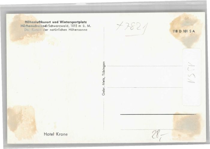40734897 Hoechenschwand Schwarzwald BW Hotel Krone postalisch nicht gelaufen Alte Ansichtskarte Postkarte Katcode 11110008337051